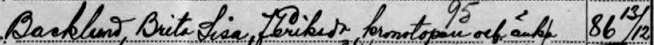 Bifogar bild som jag försökt tyda. Står något mellan "Brita Lisa" och "Kronotorpare" som jag har svårt att tyda.