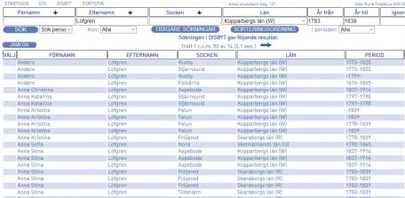 Om du kollar på personerna där det står ett annat län, så har de kanske dött /eller gift sig i "ditt län" , därför kommer de upp.
